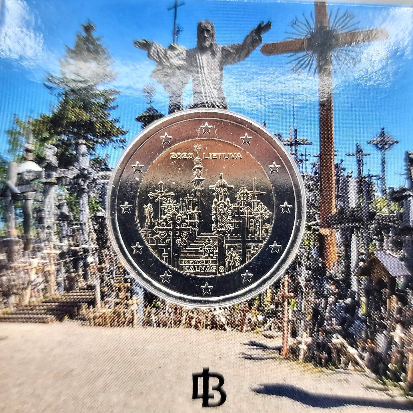 €2 commemorative coin, dedicated to the Crosses Hill in Lithuania, where pilgrims for centuries placed crosses on its ramp. It is still considered a space of peace and hope today.