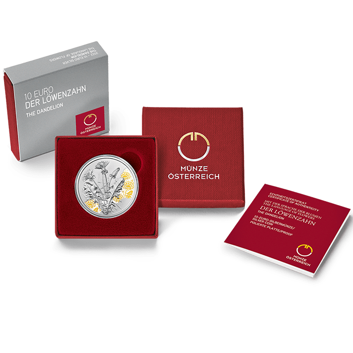 A moeda "Dente-de-Leão" (2022) é a segunda emissão da aclamada série A Linguagem das Flores da Münze Österreich.